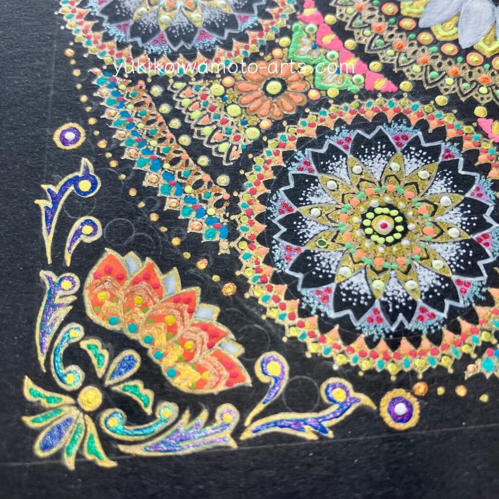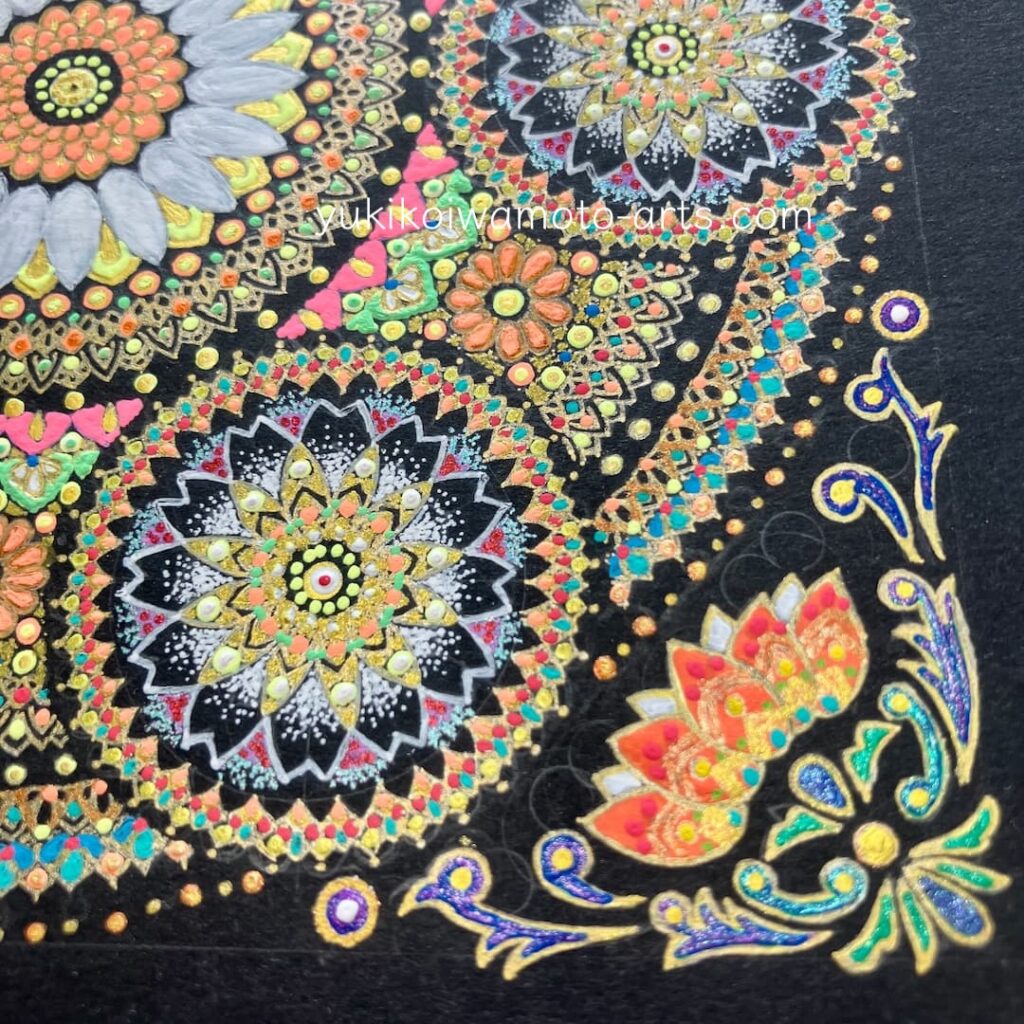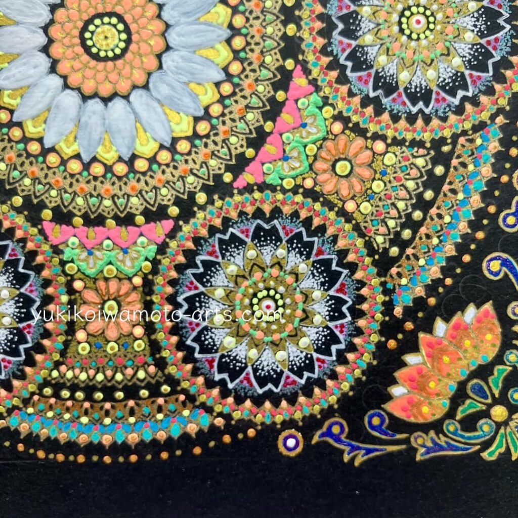 【ご注意】 この動画は、本作品が加筆修正前の緻密な作画工程をご紹介しています。現在販売している原画には、最終工程でマリーゴールドのモチーフに青・紫のラメなど、さらなる愛と光のエネルギーを加える加筆修正を施しております。最新の美しい完成形まではご紹介していませんので予めご了承ください。